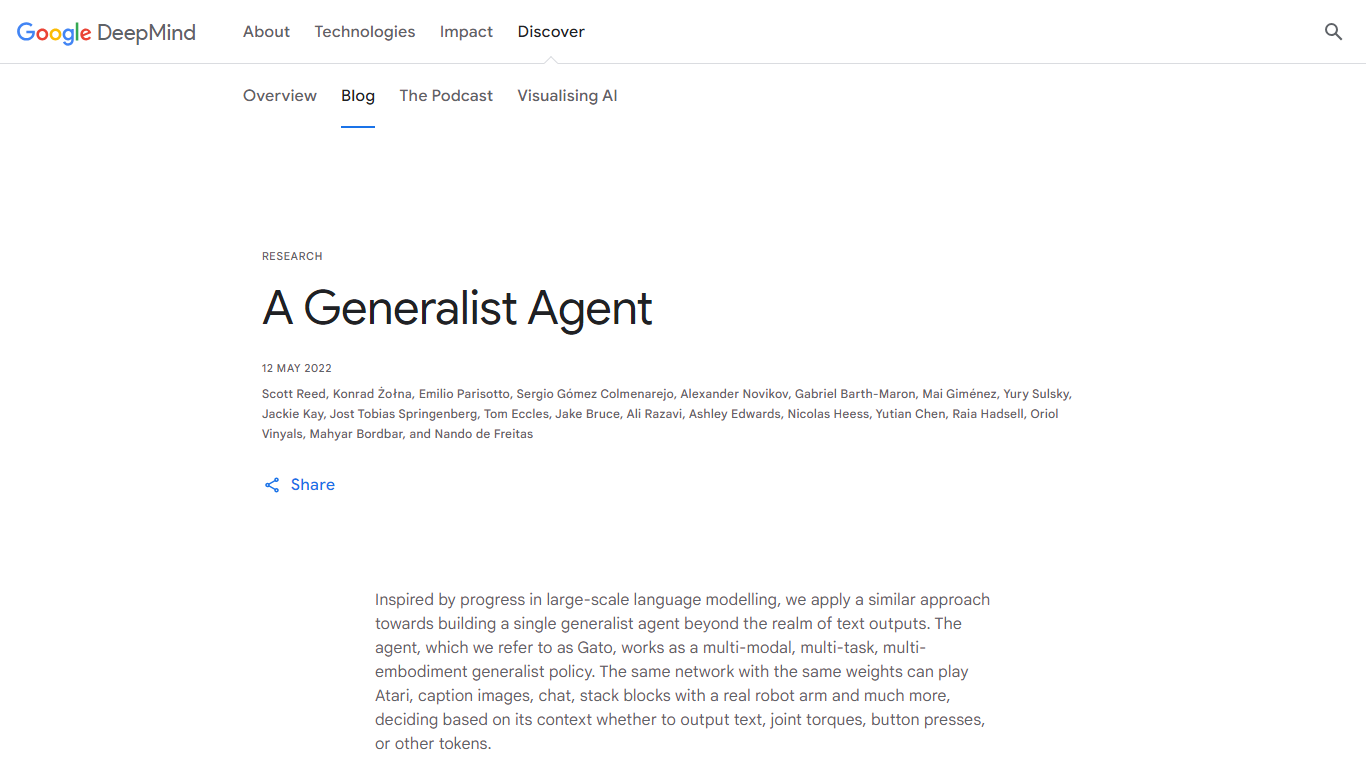 Explore the realm of artificial intelligence with DeepMind’s latest innovation, the Gato generalist agent. As a breakthrough in the field, Gato is designed to perform an array of tasks utilizing a single, versatile policy model. From playing classic Atari games to providing relevant image captions and engaging in conversation, this agent transcends boundaries with its ability to execute multi-modal objectives. Its unique capability includes the control of a robotic arm for physical tasks, showcasing its adaptability across various embodiments and interfaces. Gato’s versatility emphasizes the future of AI: one where a unified system can handle diverse challenges through contextually guided actions, whether that’s generating text, executing precise movements, or interpreting and interacting with the world in new ways.