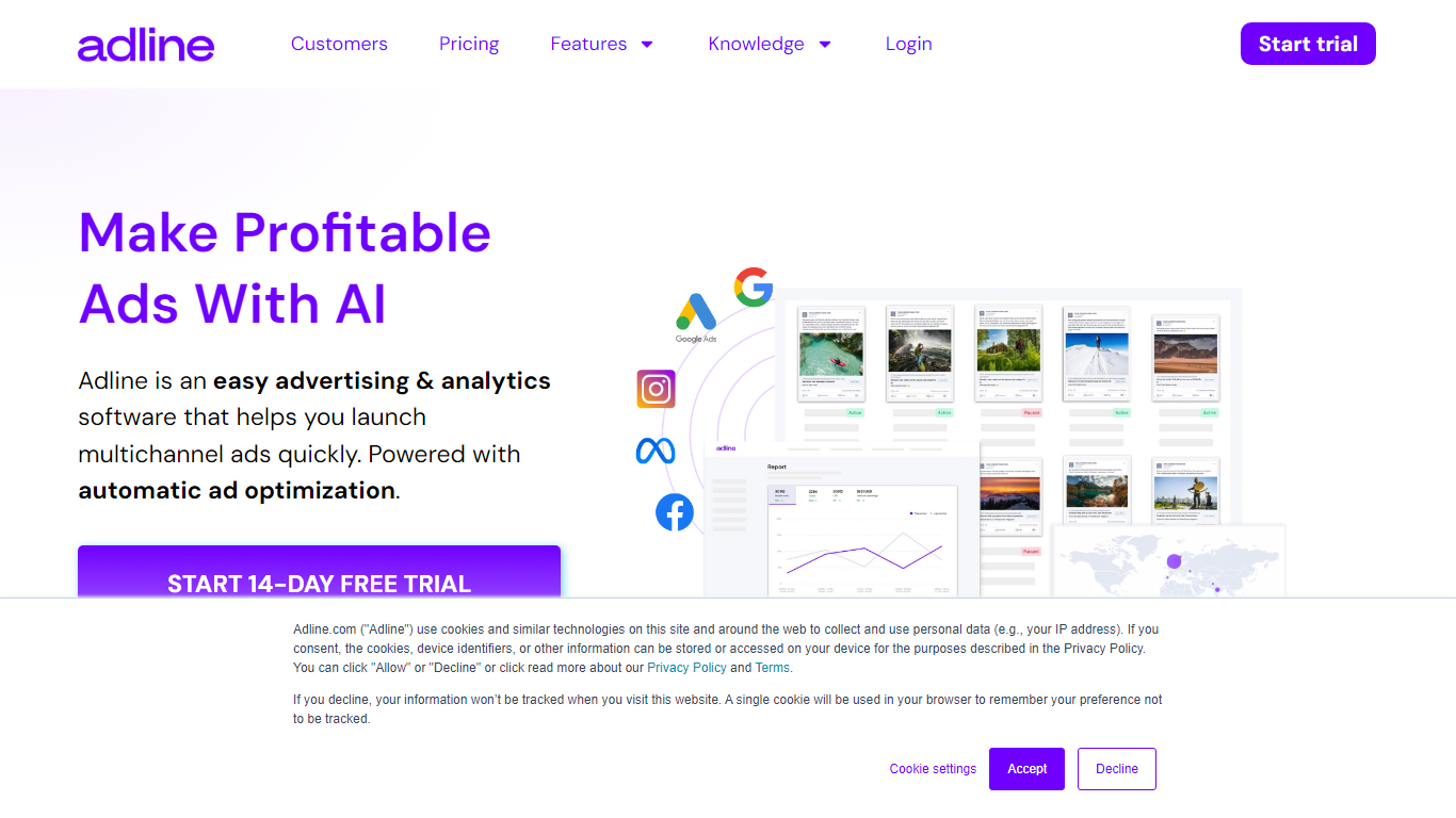Adline is the go-to advertising and analytics platform for today’s businesses seeking to optimize their advertising campaigns across multiple channels effortlessly. With Adline, you can quickly launch ads on various platforms and benefit from the power of automated ad optimization, making your advertising efforts more effective and less time-consuming. The platform’s insightful Click map analytics and Visitor Journey features provide an in-depth look at how users interact with your ads, allowing you to track results and adjust your strategy for maximum return on investment. The Knowledge hub is an added bonus, with resources like a Profitable Advertising Framework, Templates, Podcasts, Webinars, and Best Practices to guide you through creating successful ad campaigns. Catering to over 5,000 business owners globally, Adline simplifies advertising, ensuring it’s easy, profitable, and accessible for companies of all sizes. Start your 14-day free trial today and transform your advertising experience!
