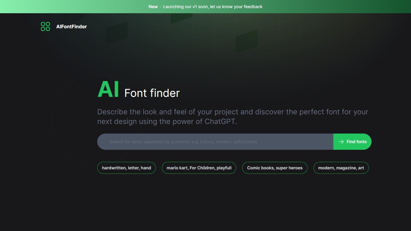 Experience the next level of typeface selection with AI Font Finder, the intuitive solution for all your font discovery needs. Powered by the advanced capabilities of ChatGPT, our tool is designed to comprehend the aesthetic essence of your project seamlessly. Whether it’s creating sophisticated brand identity or adding a touch of elegance to your graphic designs, AI Font Finder is equipped to guide you towards the perfect font choice. With our upcoming launch of version 1, we are eager to receive your valuable feedback to refine and perfect the functionality of our service. Let AI Font Finder be your go-to resource for fonts that resonate with the vision of your designs.