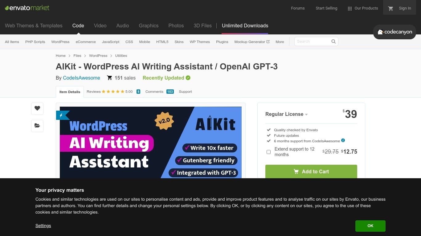 AIKit is a WordPress plugin that integrates your WordPress website directly with OpenAIâs GPT-3 which allows you to leverage AI to generate content, write complete paragraphs on any topic you can imagine, summarize text, paraphrase, generate catchy marketing copy, titles, simplify hard-to-comprehend text, and much more.