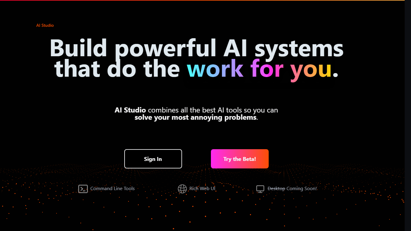 With AI Studio, you can harness the power of AI without the need for extensive coding experience thanks to its rich Web UI and handy command line tools. Moreover, the anticipation builds as a desktop version is on the horizon! AI Studio promises to be the go-to solution for anyone seeking to leverage AI capabilities for personal or professional use. Sign up now or try the Beta to jumpstart your AI journey!