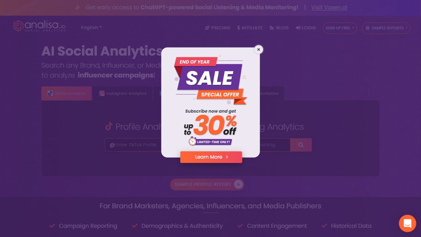 Reveal the full potential of your social media marketing with Analisa.io, the advanced AI-powered analytics platform tailored for insightful Instagram and Follower Analytics. Dive into comprehensive reports detailing demographics, authenticity, and more—with two pending reports always in queue, ensure richer insights by waiting for them to fully load. Our non-English language services are currently undergoing improvements to bring you an enhanced experience. Upgrade to unlock our enticing features, such as Follower Analytics offering demographics, gender, regional insights, and authenticity quality checks, exclusively available for public profiles. View a sample of our Pro Instagram Analytics to glimpse the depth of analysis we provide. And the best part? Basic access remains free! When you’re ready for more, consider our Plus and Pro Plans to unlock Profile Comparison Analytics, bringing competitive edge right to your dashboard.
