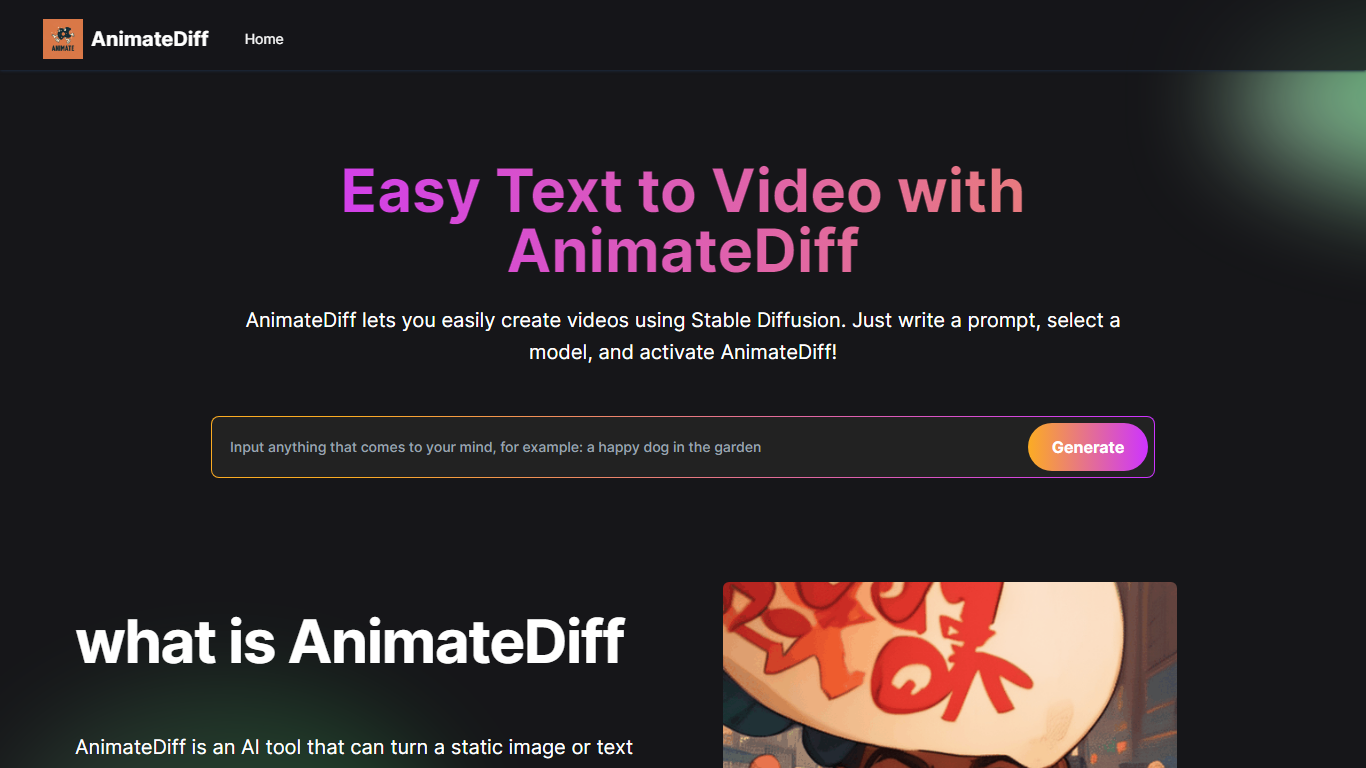 Step into a world where your creative visions come to life effortlessly. Visit AnimateDiff.org today and embark on an unparalleled journey of video animation – free, easy, and instantly accessible!
