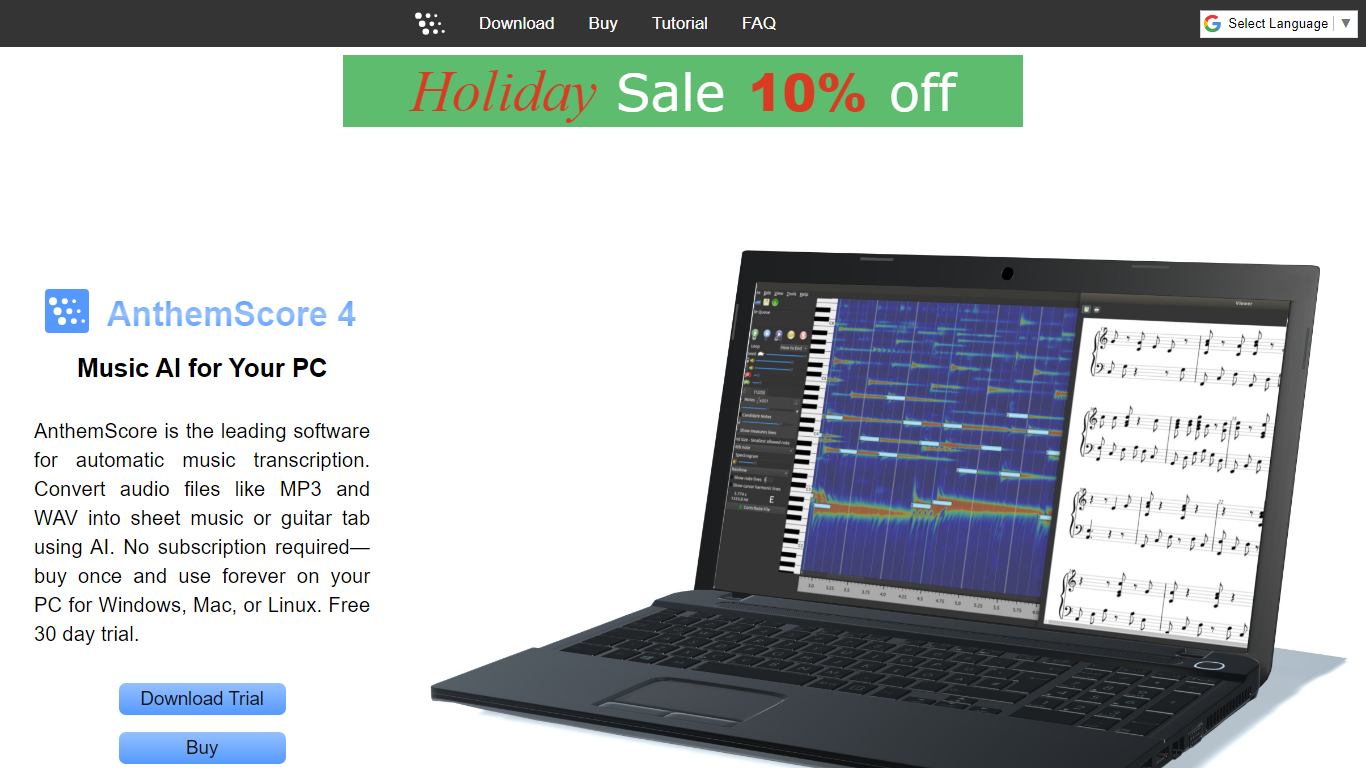 Unleash the power of AI to transcribe music effortlessly with AnthemScore, the ultimate automatic music transcription software designed for PC. Whether you use Windows, Mac, or Linux, AnthemScore transforms audio files such as MP3 and WAV into accurate sheet music or guitar tabs. Say goodbye to subscriptions; purchase once and own it forever. Enjoy the ease of automatic note detection and easy correction tools to refine your transcription. Save time with convenient features like copy-paste note sections and slow down playback for challenging parts without pitch alteration. Customize your experience by choosing the correct key, range, and staff for your instrument, whether you need standard notation or tablature. Get access to advanced editing options to quickly adjust time signatures, key signatures, tempos, and more, making AnthemScore a comprehensive solution for musicians and transcribers.
