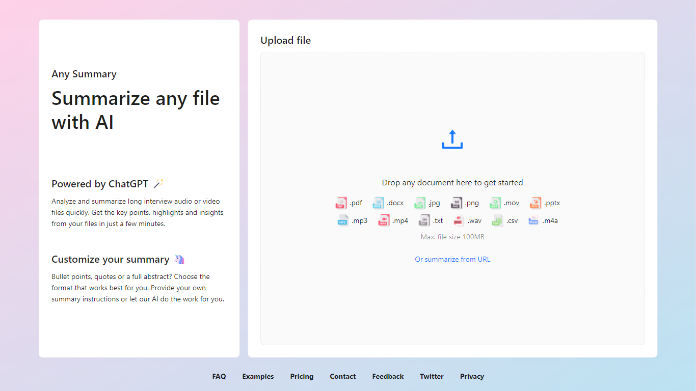 Maximize your productivity and tap into the potential of AI with Any Summary. Experience a new realm of efficiency today!