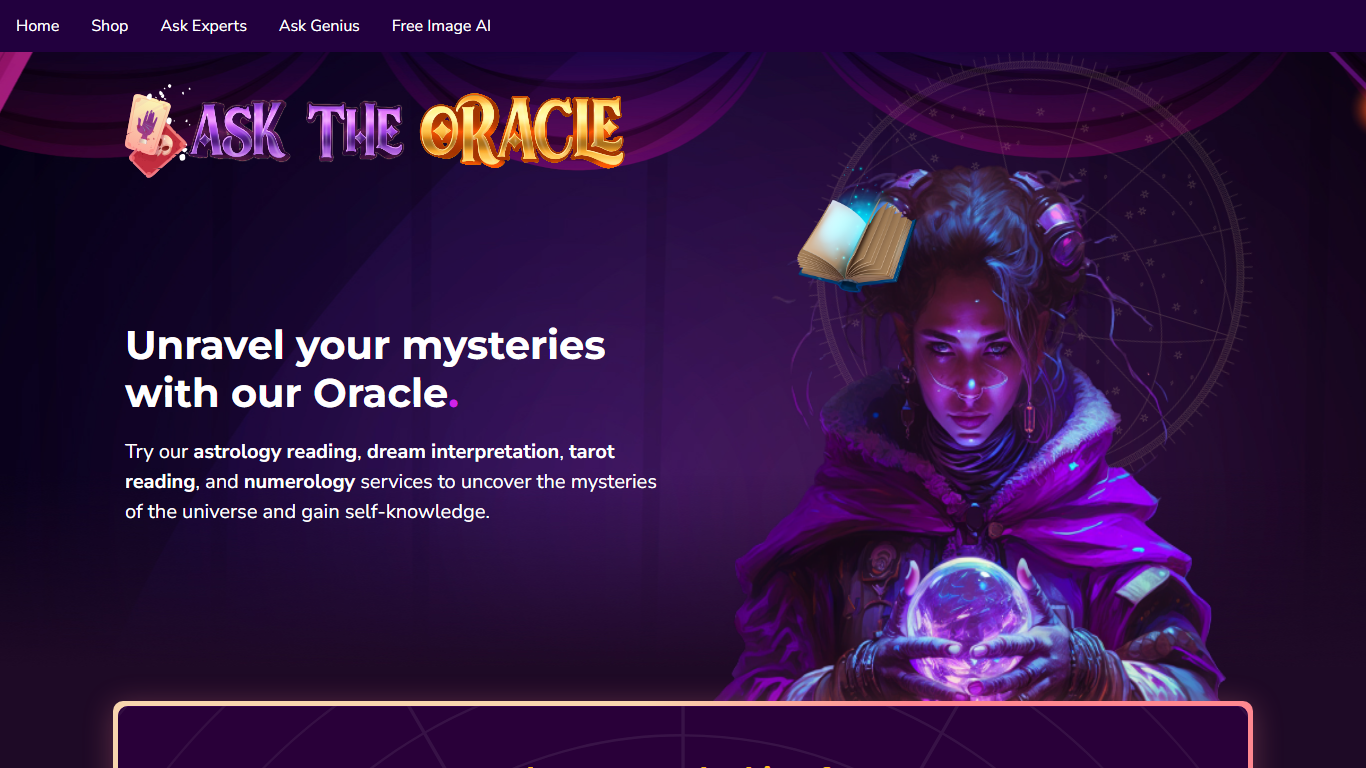 Embark on a mystical journey with “Ask the Oracle,” an interactive online experience that offers users the opportunity to delve into the ancient art of tarot through modern AI assistance. Catering to both novices and seasoned tarot enthusiasts, our platform presents an accessible and enlightening avenue to seek guidance or simply explore spiritual curiosity. The website’s seamless interface allows users to easily navigate between home, shop, expert advice, and our innovative Free Image AI tool.