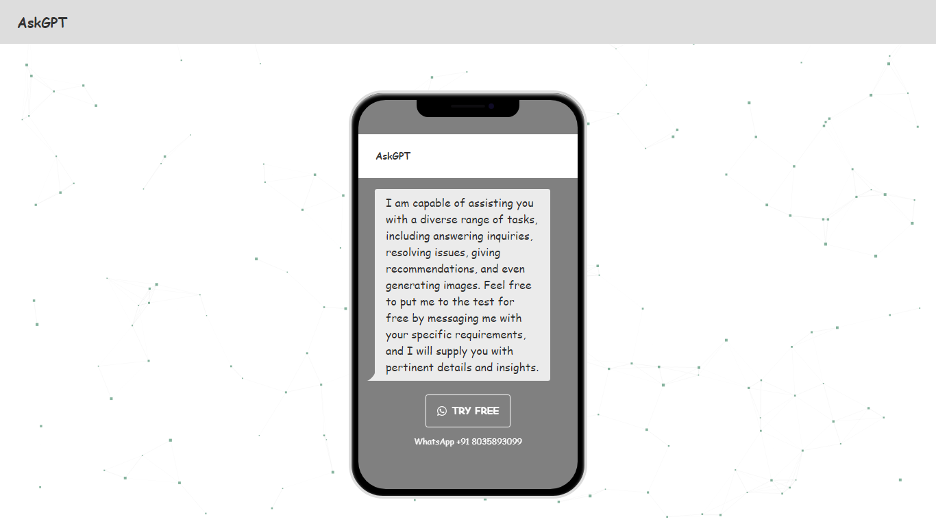 Dive into the realm of smart communication; AskGPT is designed to cater to your inquiries with responses that are both informative and contextually relevant. Whether you’re looking for answers, suggestions, or just a casual chat, our AI is here to elevate your conversational experience.
