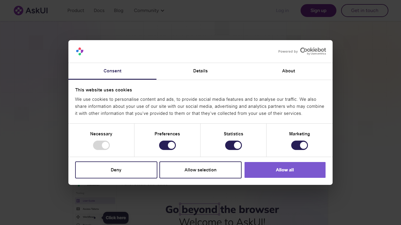 Discover the future of test automation with AskUI, where we redefine user interface automation using the power of AI. Our cutting-edge platform enables seamless automation across Desktop, Mobile, and Web applications without the need for traditional selectors. With AskUI, users can automate on any OS, including Windows, macOS, Linux, and leverage AI to handle even the most complex platform-independent frameworks such as Flutter, Xamarin, and QT. For enterprise applications, our solution effortlessly streamlines processes for SAP, ServiceNow, Citrix, Salesforce, and more, ensuring robust cross-application workflows.