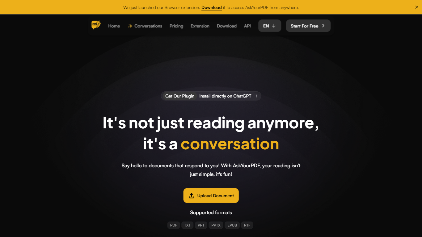 AskYourPDF is a revolutionary AI-powered tool that is designed to simplify your PDF management tasks. With our innovative ChatPDF AI App, you can easily upload your PDF files and engage with our intelligent chat AI to extract valuable insights from your documents.