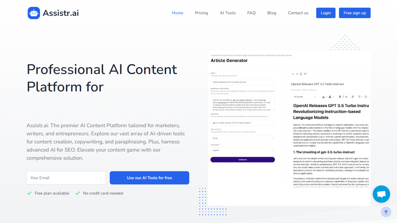 Assistr.ai is your premier destination for AI-driven content solutions, focusing predominantly on AI Content Creation, Copywriting, and Paraphrasing tools. Our offerings are tailor-made to deliver compelling text content, be it captivating blog posts, engaging social media posts, or detailed product descriptions. Each piece is meticulously designed to be conversion-focused and SEO-friendly, ensuring your content not only reaches its target audience but also resonates with them.