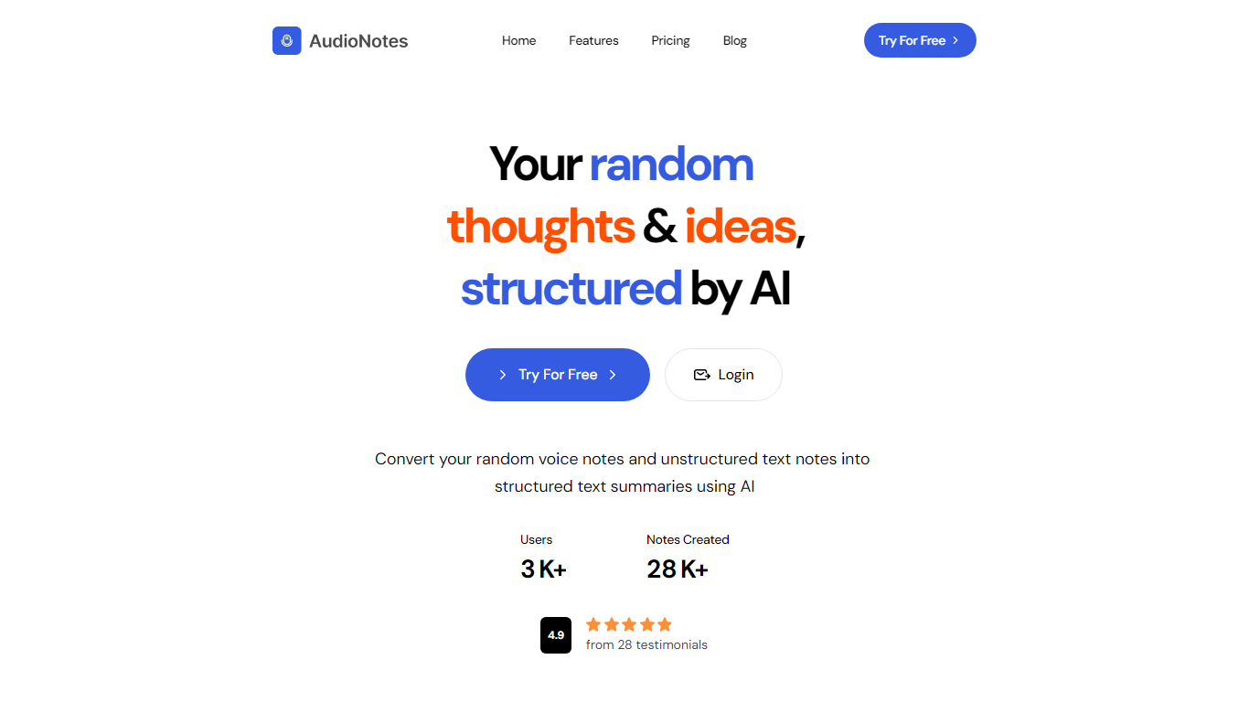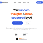 Unleash the power of AI with AudioNotes, the premier AI-Based Note-Taking App that excels at structuring your unstructured voice and text notes into coherent summaries. Ideal for users who frequently jot down their random thoughts and ideas, AudioNotes streamlines the note-taking process, making it more efficient and accessible. The app is host to a plethora of features, including the ability to record or upload voice notes, create text notes, and then swiftly convert these into structured summaries with AI assistance. With features like Smart Transcripts, Clean Transcripts, and Summary Preferences, AudioNotes ensures that the note-taking experience is tailored to your preferences. Moreover, AudioNotes is not just about summarization; it excels in content creation. Generate high-quality content like emails, social media posts, minutes of meetings, and more with just a single click, thanks to the app’s use of custom prompts and its support for content generation in over 19 languages. The convenience extends to integrations as well, with AudioNotes boasting connections to WhatsApp, Zapier, Notion, and more—empowering you to streamline your workflows. Additionally, the Magic Chat feature acts as your AI Assistant, helping you search and interact with your notes seamlessly. Sharing is a breeze with social sharing features and publicly shareable URLs, and for the on-the-go user, a lightweight mobile app ensures access to your notes anywhere.