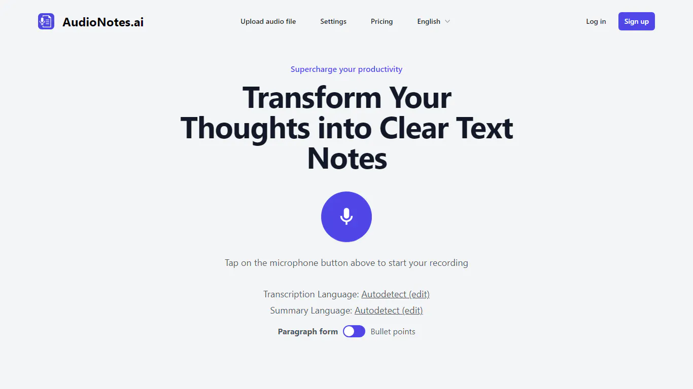 AudioNotes.ai is an advanced, user-friendly tool powered by AI that transforms your voice notes into organized text summaries effortlessly. With just a few spoken words, the tool takes care of the rest, making your life simpler.