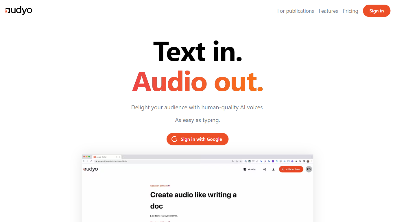 Audyo is a groundbreaking AI-powered tool that revolutionizes the way we create and edit audio. With Audyo, you can now create audio content effortlessly, just like writing a document. Gone are the days of tedious waveform editing – Audyo allows you to edit words directly, making the audio production process more intuitive and efficient.