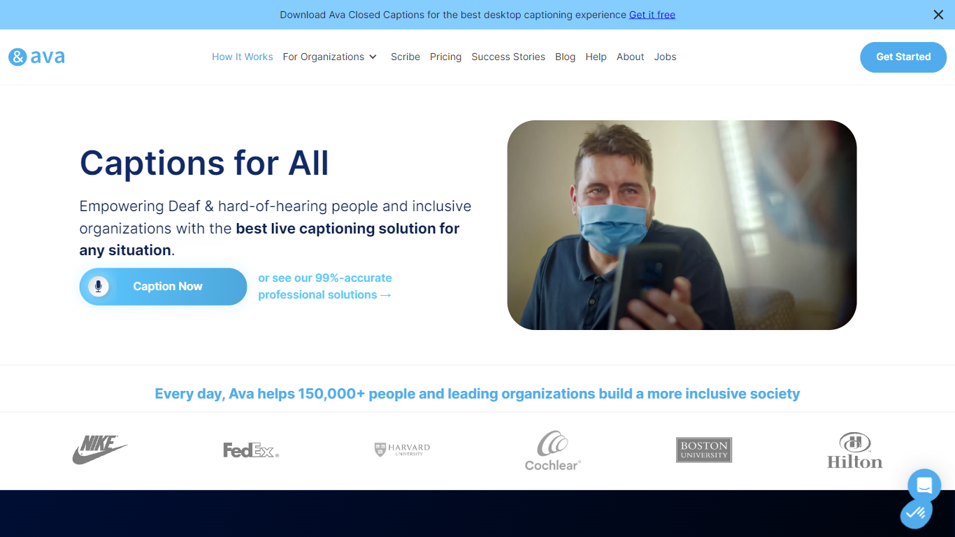 Ava is a website that offers free live captions or transcriptions for videoconferencing and in-person meetings. With just one click, Ava, an advanced AI system, accurately captions any type of meeting, lecture, doctor visit, or important conversation. The website ensures 24/7 communication access for Deaf and hard-of-hearing individuals by utilizing a combination of AI technology and professional captioners.