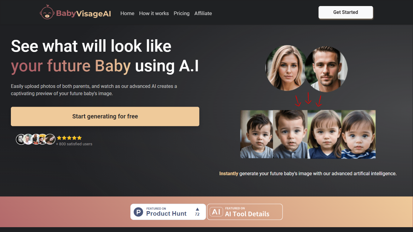 Generate the first image of your future baby for free. or buy credit starting at 2,99$