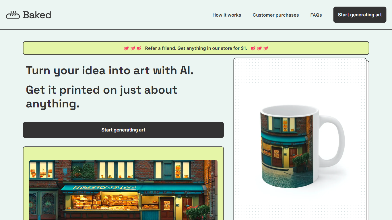 Baked is an innovative platform that allows users to turn their ideas into personalized works of art with the help of AI. Whether you’re looking to create a unique design for a coffee mug, phone case, t-shirt, or any other product, Baked has you covered. With their state-of-the-art AI image generation software, called Stable Diffusion, Baked is able to generate stunning and one-of-a-kind images for every customer.