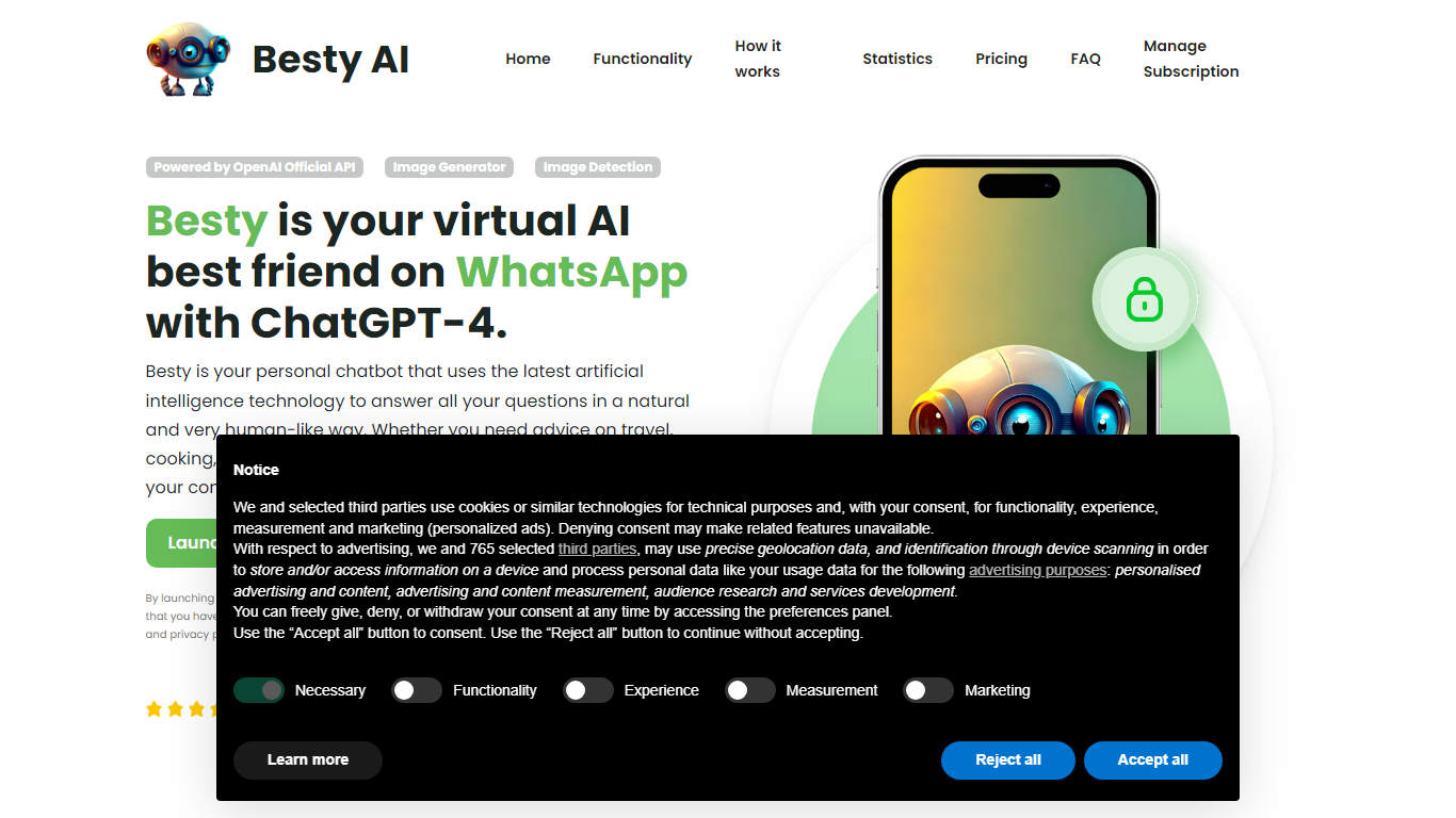 Meet Besty AI, your revolutionary virtual AI companion, now available directly through WhatsApp with the integration of the cutting-edge ChatGPT-4. Rated 5 stars by over 8000 users, Besty is poised to redefine your AI interaction experience. As the most advanced linguistic AI in the market, Besty stands out as the sole system capable of fully grasping dialogue context, ensuring your conversations feel as natural and human-like as possible.