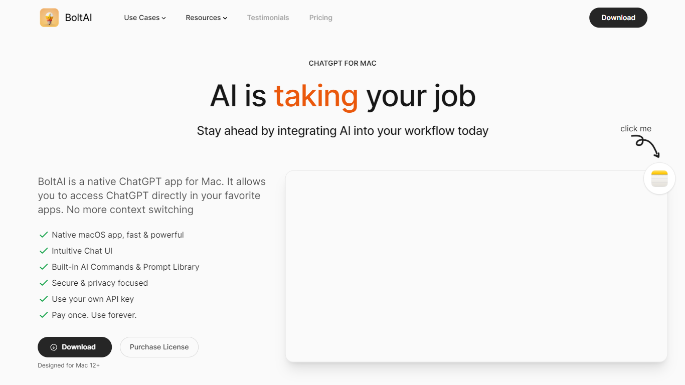 BoltAI is a native application designed specifically for Mac users, aiming to integrate the capabilities of ChatGPT into their daily workflows seamlessly. The platform promotes the idea that while AI won’t replace humans, those who harness its potential will undoubtedly be more productive.