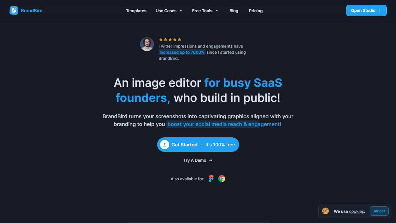 Elevate your digital presence with BrandBird, the swift solution for creating stunning screenshot mockups and graphics. Ideal for enhancing your website visuals, user interface designs, social media posts, blog articles, newsletters, and landing page elements. BrandBird transforms mundane images into captivating, professional-quality graphics in mere seconds. With an intuitive interface, BrandBird simplifies the design process, making it accessible even to those with no graphic design skills. Unleash your creativity and personalize your projects to reflect your unique brand identity without any hassle.
