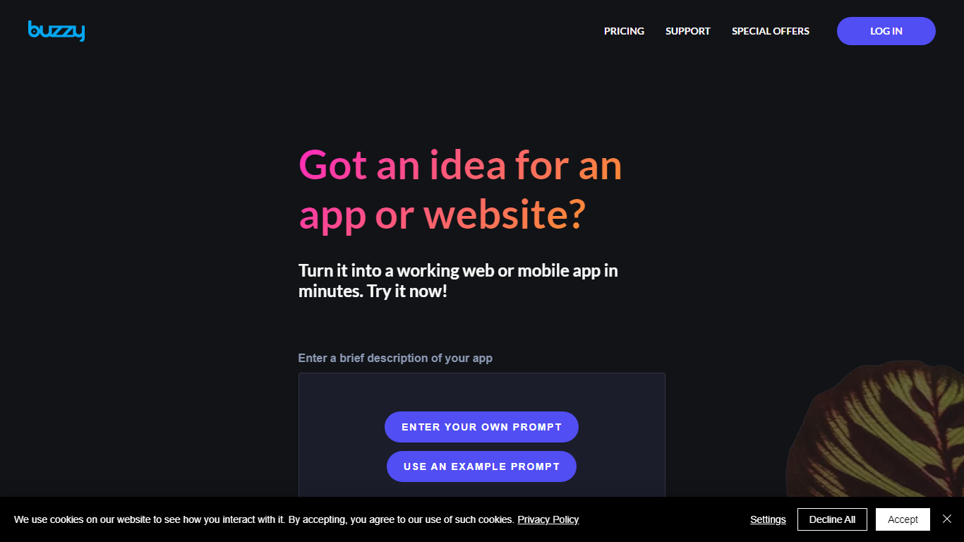 Transform your app and website concepts into reality with Buzzy, the cutting-edge no code platform. Buzzy leverages AI to convert your ideas into high-quality Figma designs and fully functional web or mobile applications in just minutes. Whether you’re starting from scratch or utilizing an existing Figma design, Buzzy simplifies the app creation process, eliminating the need for complex coding. As endorsed by AI experts and professionals, Buzzy opens a world of opportunities, enabling creators and non-technical founders to rapidly validate their MVPs and bring real products to market. Join the Buzzy community today and experience the future of app development, made more accessible and efficient than ever before.