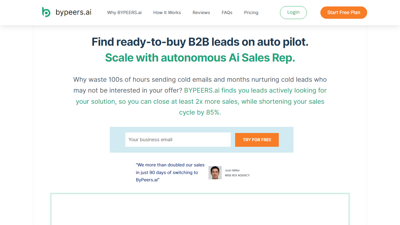Try our platform for free today and join numerous satisfied customers who have witnessed a formidable boost in their B2B sales with BYPEERS.ai.