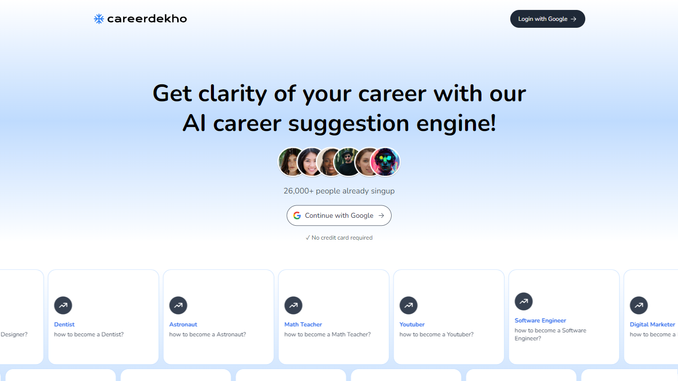 Careerdekho AI is an innovative AI-powered career discovery tool that aims to help individuals find the perfect career fit. With the assistance of advanced artificial intelligence technology, this tool provides personalized recommendations and insights to guide users towards their ideal career path.