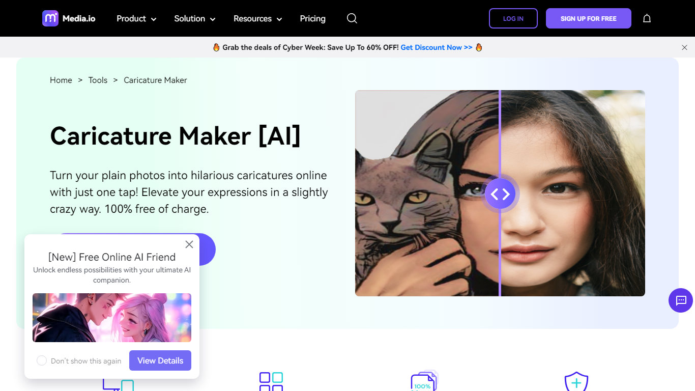Unleash the fun and creativity with Media.io, your go-to online resource for transforming photos into caricatures instantly and for free! Ideal for those without a knack for drawing, Media.io’s caricature maker lets you produce striking caricatures in seconds. Delve into an array of AI-powered tools beyond caricatures, such as the AI Song Generator to create music covers, AI Portrait Generator to craft artistic self-portraits, and a suite of video tools for enhancing and customizing your media creations. Whether for personal enjoyment or enhancing social media content, Media.io is equipped with hot features and new additions catering to various creative needs – all without the requirement of advanced artistry or technical skills.