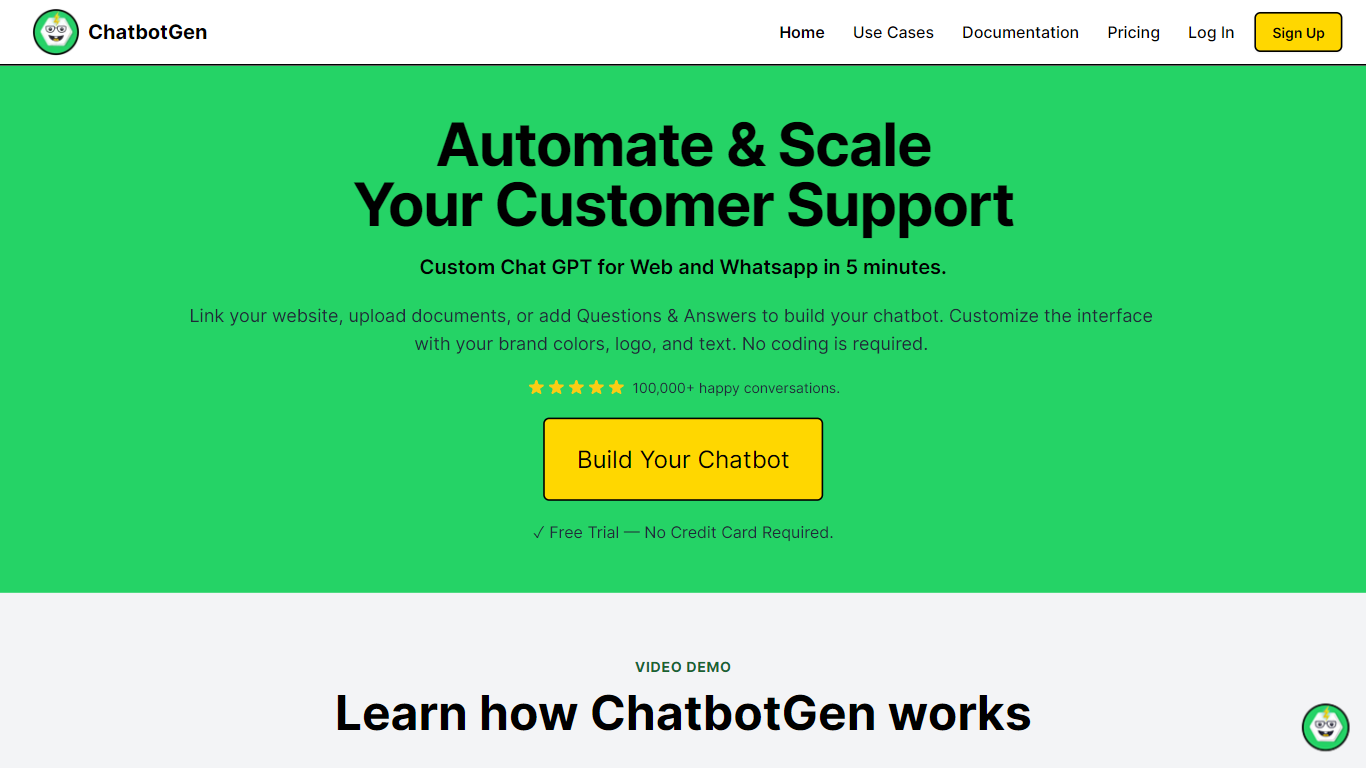 Overall, ChatbotGen is a powerful and user-friendly AI chatbot builder that empowers businesses to create customized chatbots for their websites and WhatsApp. With its no-code approach and versatile features, ChatbotGen is a valuable tool for enhancing customer experiences, automating tasks, and driving growth.
