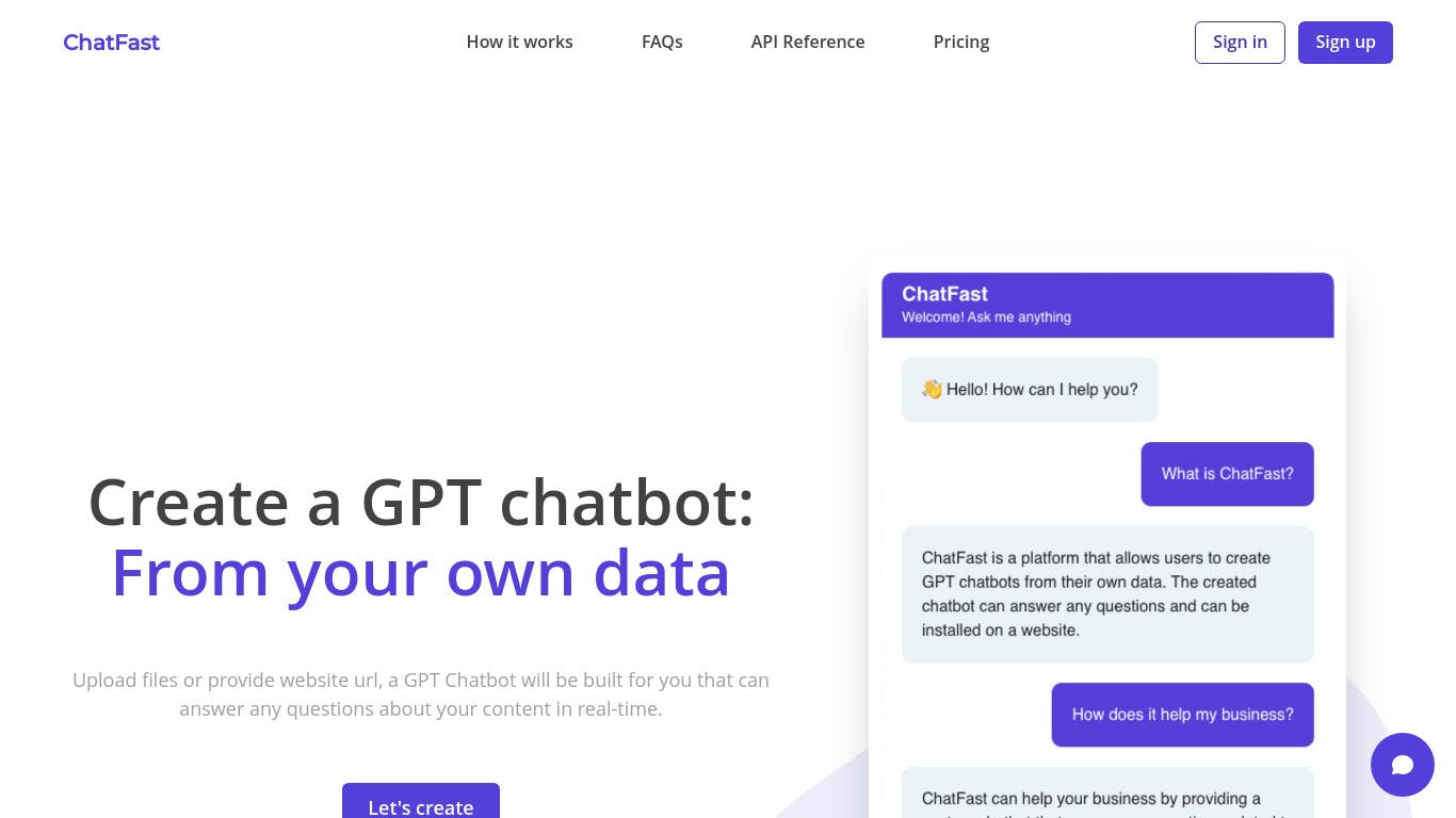 ChatFast is a platform that allows users to create GPT chatbots from their own data.