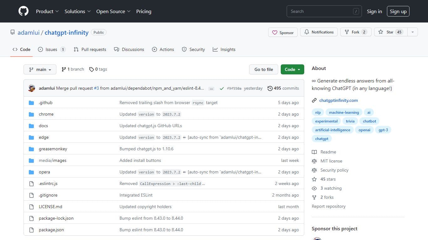 Introducing ChatGPT Infinity: the ultimate chat companion that brings you unlimited answers to a wide range of random questions on any subject. This free and powerful Chrome Extension expands your knowledge exponentially.