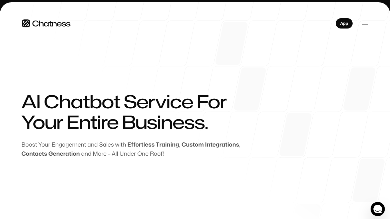 Elevate your business engagement and conversion with Chatness AI’s leading-edge chatbot solutions. Expertly crafted to blend into your brand, these AI chatbots are powered by OpenAI’s GPT4, ensuring top-notch performance and adaptability. With a promise of ultra-low latency and petite widget size, Chatness AI emphasizes seamless user interactions.