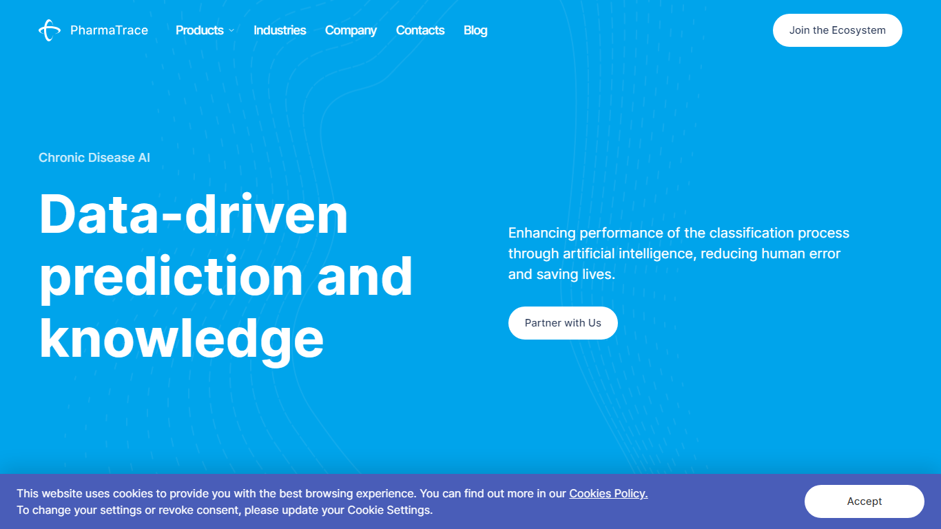Unlock the potential of AI in chronic disease management with PharmaTrace. Our cutting-edge technology enhances the classification process through artificial intelligence, reducing human error and saving lives. PharmaTrace offers a suite of AI-driven solutions, including predictive models that increase the likelihood of early disease detection, thereby lowering healthcare costs and enhancing budget forecasts. We support healthcare providers and organizations in navigating the complex landscape of chronic disease with data-powered early detection systems. Our evolving technology empowers medical centers to improve clinical decision-making and foster smoother patient interactions by leveraging real-time data integration. With PharmaTrace, you become part of an ecosystem that values precise prediction analysis, seamless smart contract automations, and robust big data analytics, all designed to boost performance metrics and healthcare outcomes.