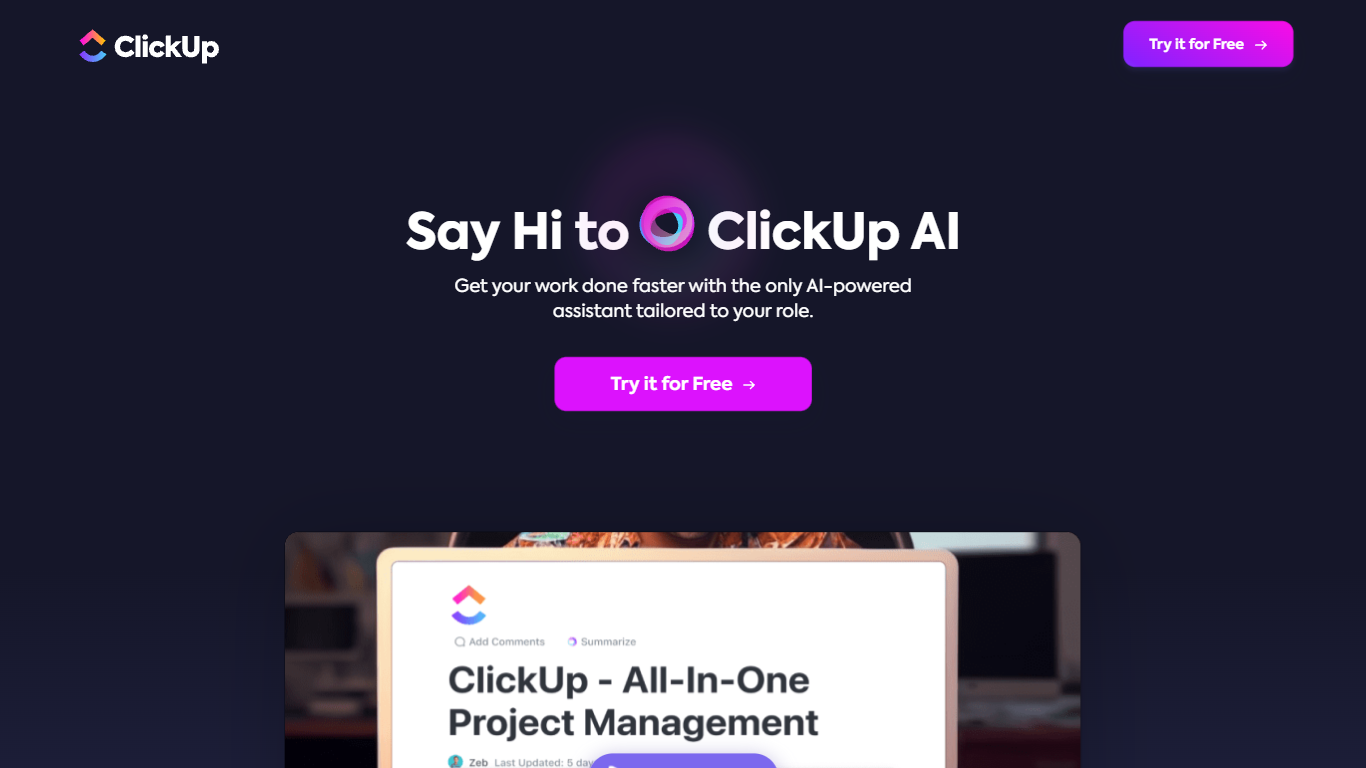 ClickUp AI Writing Assistant is a powerful tool designed to save you time and enhance your writing process. With this advanced AI-powered assistant, you can automate various tasks such as generating creative ideas, summarizing lengthy text, and kick-starting your writing projects.