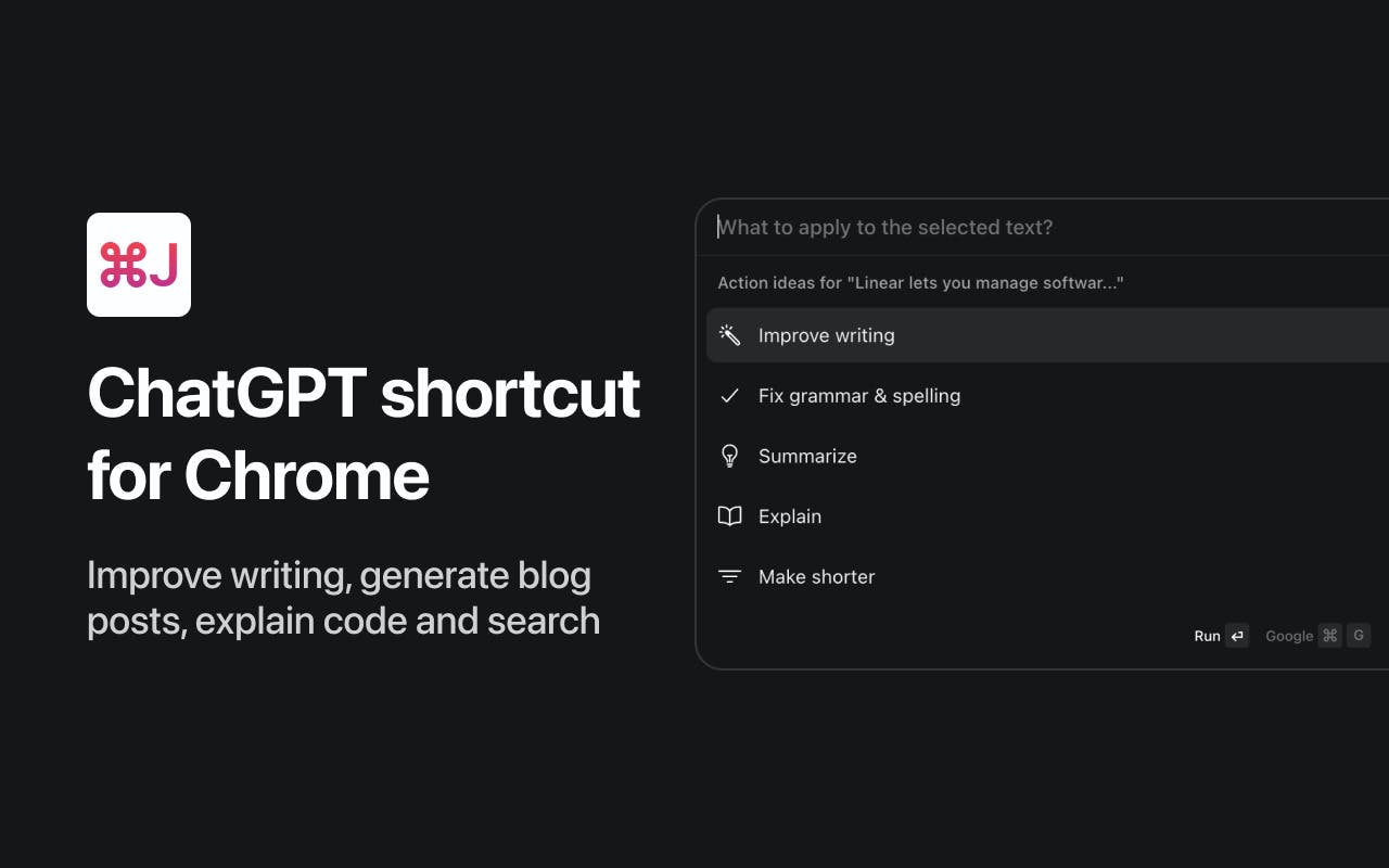 The CmdJ app allows you to use ChatGPT on any tab without the hassle of copy-pasting. It’s like Notion AI, but for any product.