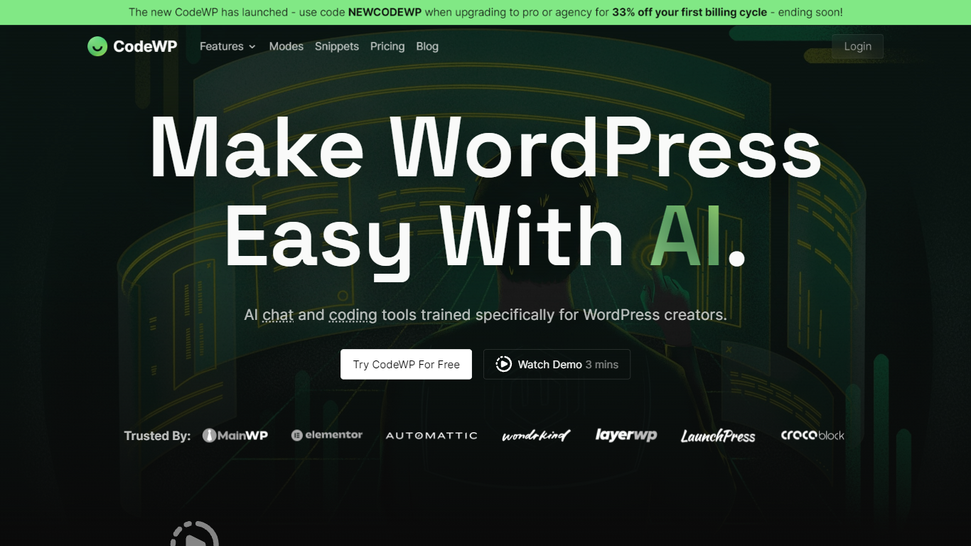 CodeWP is a cutting-edge platform designed to make WordPress development easier and more efficient with the help of AI. Our AI chat and coding tools are specifically trained for WordPress creators, providing them with the necessary support and resources to enhance their workflow and productivity.