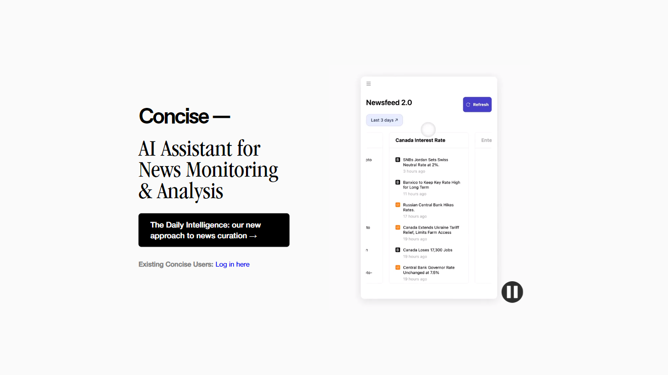 - **AI-Powered News Analysis**: Concise uses artificial intelligence to analyze and monitor news stories providing users with insightful and tailored content.