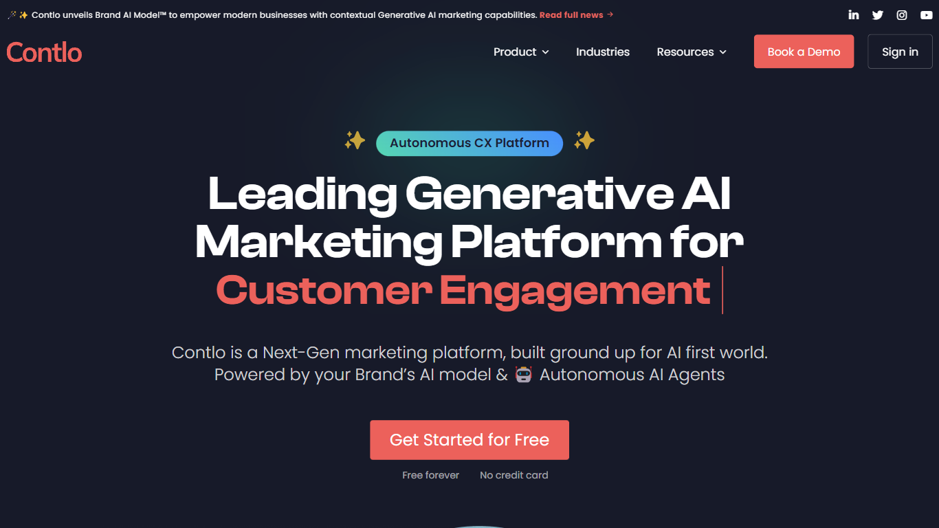 Contlo is a leading generative AI marketing platform that is revolutionizing the way fast-growing modern businesses approach their marketing strategies. Powered by your brand’s AI model and autonomous AI agents, Contlo offers innovative solutions to effectively reach and engage with your target audience.