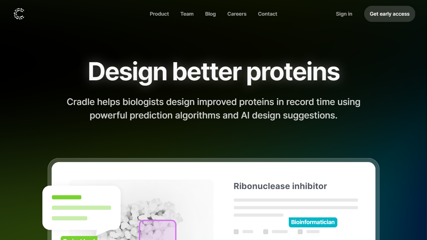 - **AI Design Suggestions**: With AI design suggestions Cradle provides biologists with insights and recommendations for optimizing protein design.