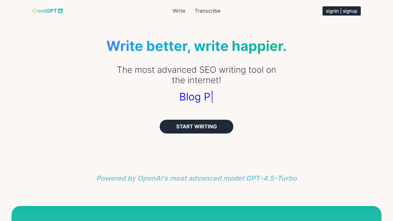 Unlock the full potential of your writing with CrestGPT, the AI-powered writing assistant revolutionizing content creation. Say goodbye to writer’s block and welcome engaging, SEO-enhanced content tailored for your audience. Our intelligent tool, powered by OpenAI’s advanced GPT-4.5-Turbo, streamlines the writing process, saving you time and boosting online engagement. With features like auto-generated SEO-friendly content, placeholders for media, listicles, and rich-text editing, CrestGPT is the ultimate writing companion. Embrace the future of writing and supercharge your productivity.