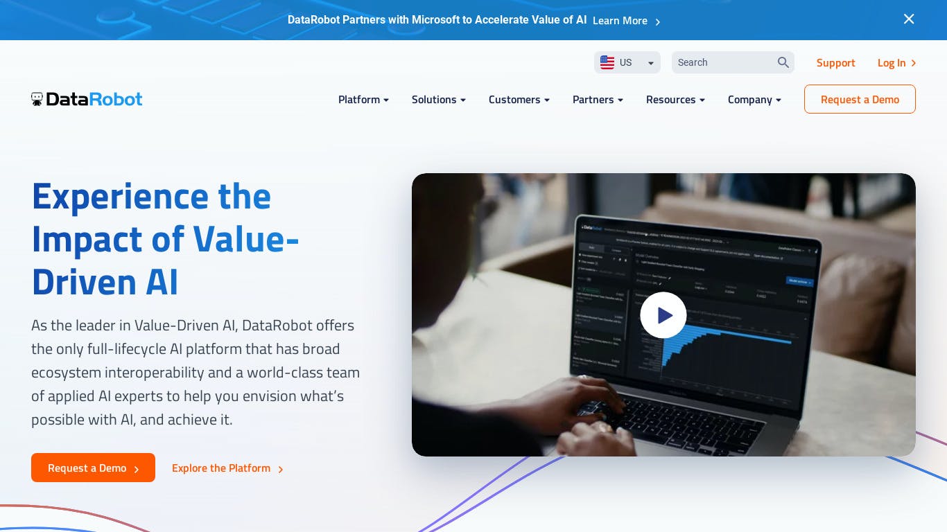 DataRobot is an AI cloud-based platform that allows users to build and deploy machine learning models. It provides a platform for data scientists of all skill levels to build and deploy accurate predictive models in a fraction of the time it used to take. The technology addresses the critical shortage of data scientists by changing the speed and economics of predictive analytics.