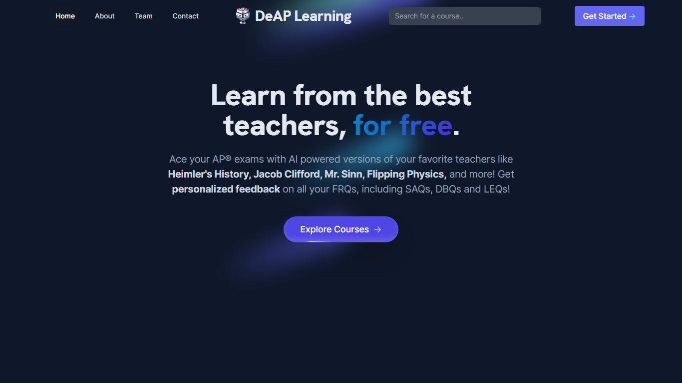 Embark on a revolutionary journey of education with DeAP Learning, where AI-powered chatbots in the likeness of your favorite content creators provide an unparalleled learning experience. Discover a diverse array of courses covering AP United States History to Science, all taught with the authenticity and insight of esteemed educators like Heimler’s History and Jacob Clifford. Dive into the rich repository of knowledge and get personalized feedback on your FRQs, including SAQs, DBQs, and LEQs, to maximize your test performance. DeAP Learning is not just an educational platform; it’s a community built by students for students, ensuring that the tools and guidance you receive are tailored to meet the real challenges of academic success. Experience tomorrow’s AI-teaching today!