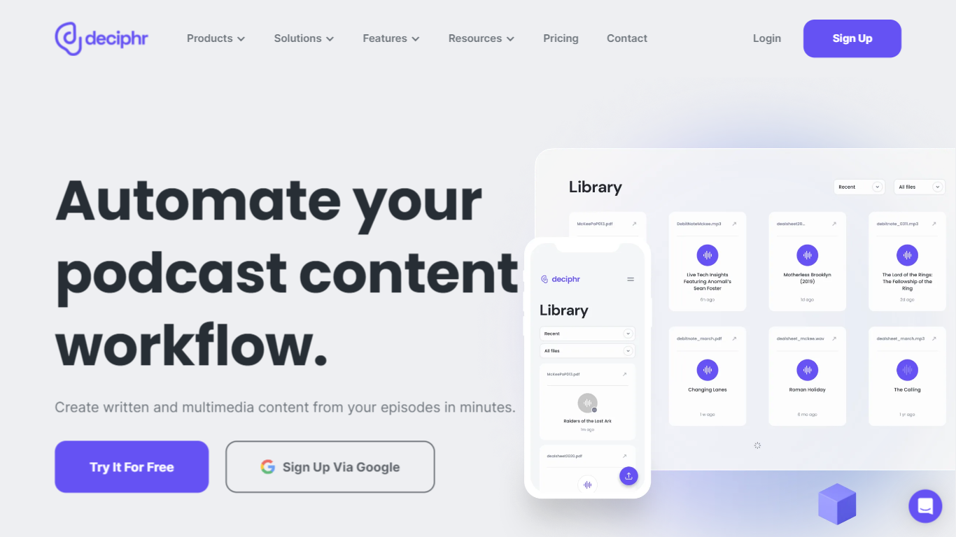 - **Audiograms:** Boost your audio content’s reach with Deciphr’s instant audiogram creation.