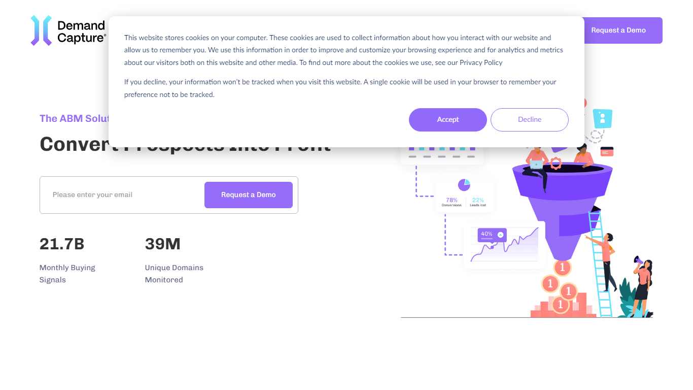 The ABM solution provided by DemandCapture transforms prospect engagement into profitable ventures. They power their approach with a deep learning algorithm and a commitment to delivering BANT-qualified appointments, which results in significantly higher close rates. Additionally, the performance-based pricing model further underlines their confidence in providing measurable results—you only pay for meetings that deliver.