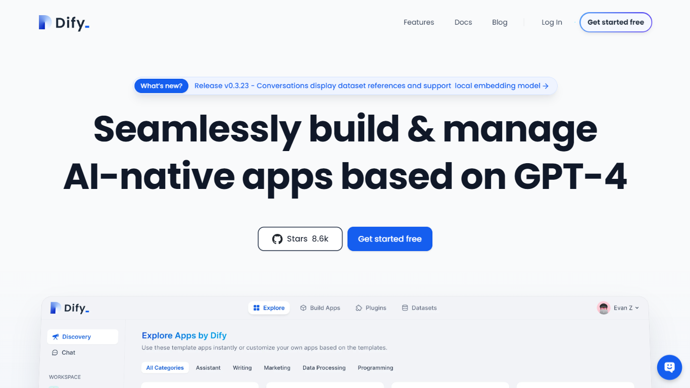 “Dify.AI is an open source platform for LLMOps(https://github.com/langgenius/dify) that helps developers build AI applications more simply and quickly, based on different large language models. Its core concept is to define all aspects of an AI application, including prompts, contexts, and plugins, through declarative YAML files. Dify provides visual orchestration of prompts, operations, dataset management, and more. Create an AI app in minutes or integrate LLM into your app for continuous improvement.