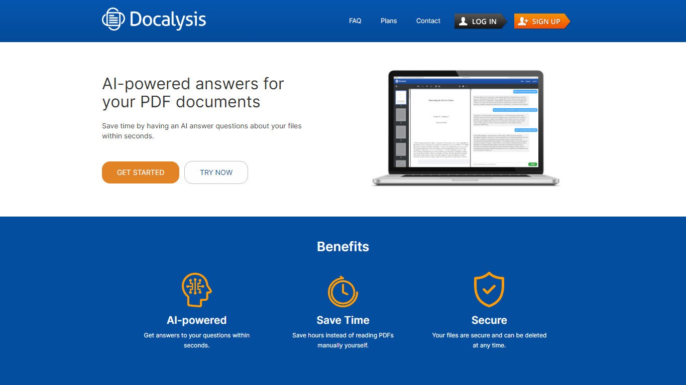 Docalysis revolutionizes document handling by integrating an AI chat feature for PDF files, ensuring you get instantaneous answers to your inquiries. Embrace the cutting-edge AI technology that reads and comprehends your documents, saving you countless hours that you would have otherwise spent pouring over pages. Security is paramount at Docalysis, where your files are protected with the utmost confidentiality and can be conveniently deleted at any time. With the promise of saving 95% of the time you would have generally dedicated to document reading, Docalysis empowers you to work smarter and impress your superiors with the efficiency it brings to your workflow.