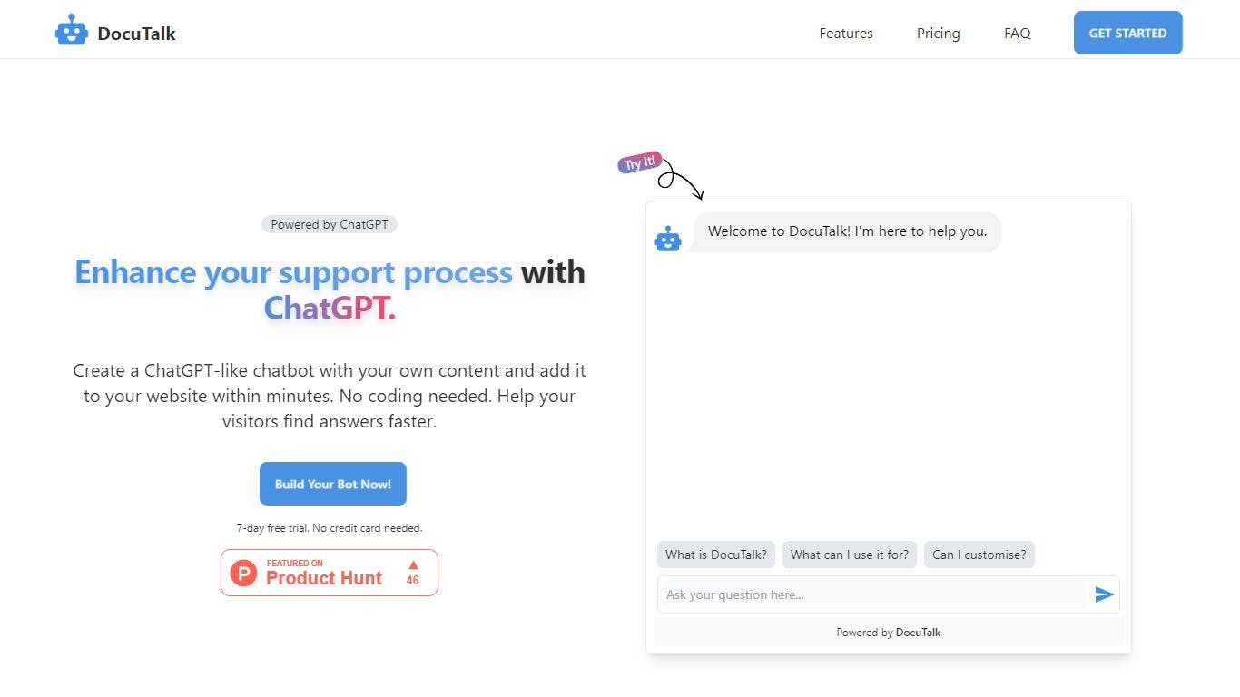Create a ChatGPT-like chatbot with your own content (website, documents, etc.) and add it to your website within minutes. No coding needed. Help your visitors find answers faster.