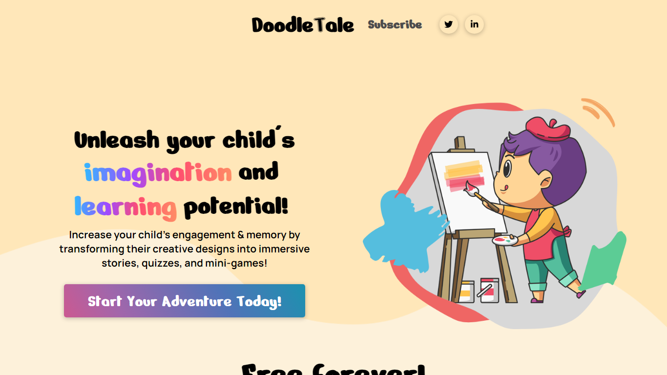 DoodleTale is an innovative app designed to boost your child’s engagement and memory by transforming their art into interactive and educational stories. This app, co-created with educators, is crafted to cultivate motor skills, creativity, and imagination in young minds, offering a unique blend of enjoyment and learning. Through customizable coloring experiences, children can design coloring book pages, which are then brought to life with AI-generated tales full of riddles and adventure. DoodleTale supports multiple languages and devices, making it universally accessible. The narrated stories enrich the coloring experience and save favorites facilitate revisiting cherished adventures. With plans tailored to your needs, DoodleTale provides a progressive web app experience that’s compatible with a wide variety of platforms, ensuring that your child’s creative journey is seamless and ever-improving.