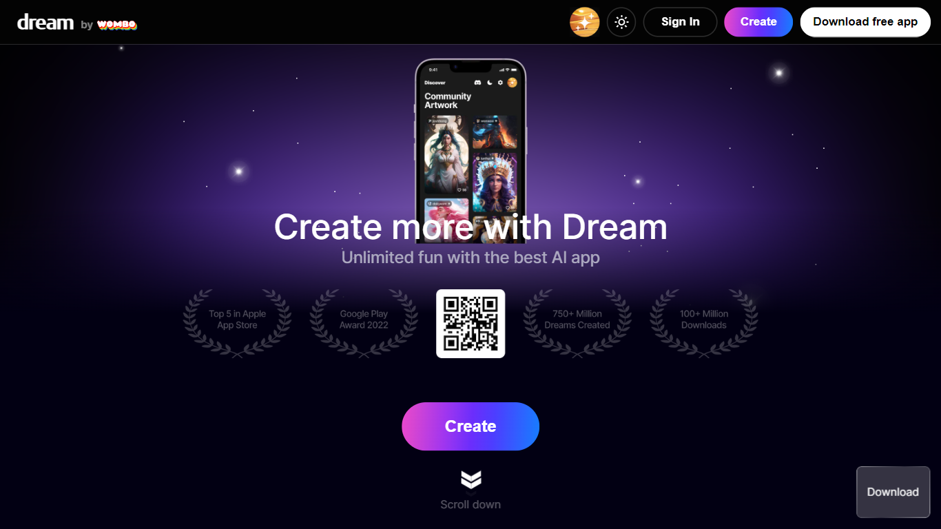 Experience the future of personalized art creation with Dream by WOMBO. Our innovative platform allows users to effortlessly craft stunning visual pieces with the simple click of a button. Embodying the essence of creativity and technology, Dream by WOMBO is your go-to destination for transforming thoughts and ideas into beautiful artworks. Enhanced by our premium service, gain access to advanced features that empower you to bring to life vivid and intricate art pieces. The user-friendly interface backed by our sophisticated AI algorithms ensures a seamless art-generation journey. Whether you’re an artist looking for inspiration, someone seeking a unique personal piece, or simply an admirer of AI-generated art, Dream by WOMBO provides an unmatched artistic outlet. Sign in to begin your artistry voyage and let your imagination run wild with the luxury of innovation at your fingertips.