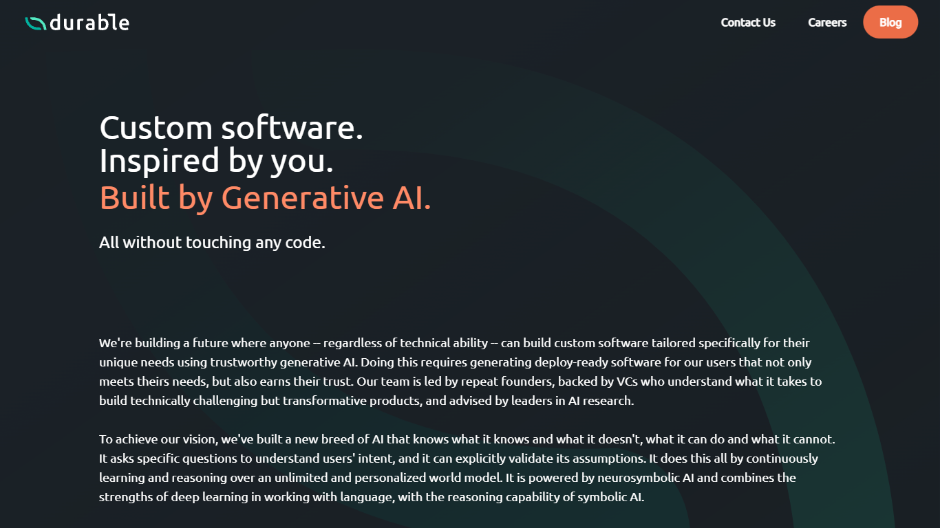 - **Trustworthy Generative AI**: Durable’s generative AI is designed to generate software that not only meets the users’ needs but also earns their trust.