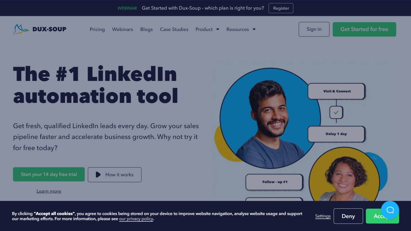 - **14-Day Free Trial:** Start with a free trial no credit card required to witness the powerful features and benefits of Dux-Soup.